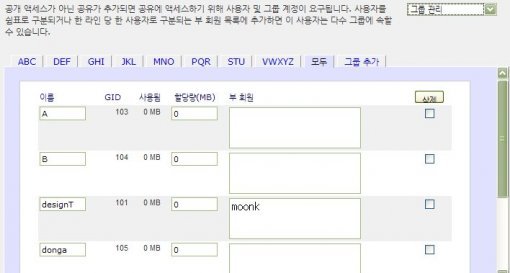 조건 5. 각 사용자에 따라 할당 저장 용량을 조정할 수 있다