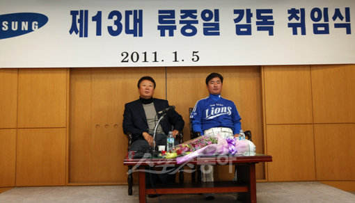 5일 경북 경산시 삼성라이온즈 경산볼파크에서 열린 제13대 류중일 감독 취임식 후 기자회견이 열렸다.