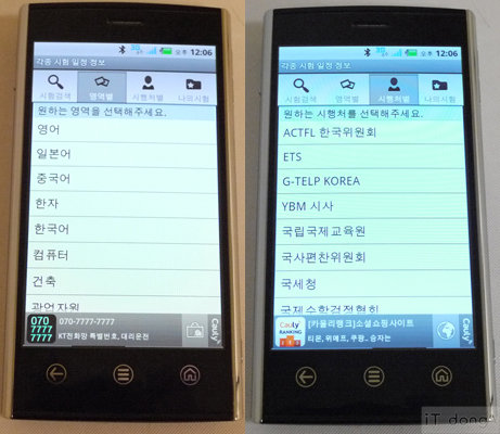영역별 메뉴에서는 영어, 일본어, 중국어, 한자 등의 영역별 시험이 일렬로 나열된다. 시행처별 메뉴에서도 똑같은 방식으로 국세청, 국사편찬위원회, ETS 등 시행처별로 나열된다.