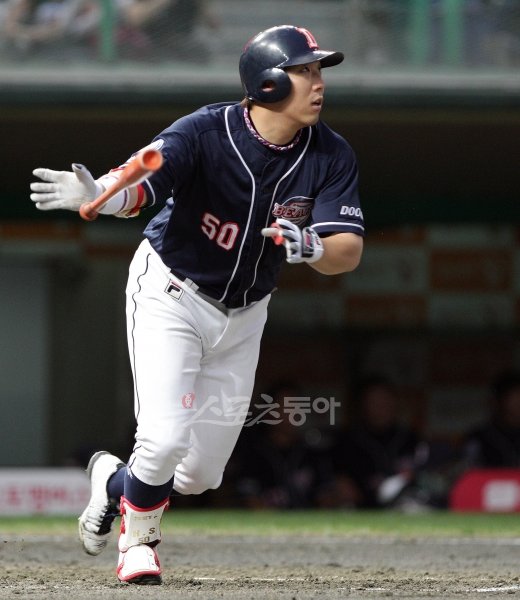 25일 인천 문학야구장에서 열린 ‘2011 롯데카드 프로야구’ SK와 두산의 경기에서 3회초 두산 공격 1사 2, 3루 상황에 김현수가 2타점 적시타를 때려내고 있다.