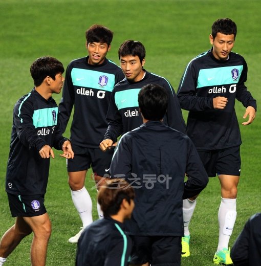 한국축구대표팀 선수들이 UAE와의 2014년 브라질 월드컵 아시아지역 3차 예선전을 하루 앞둔 10일 수원월드컵경기장에서 훈련 모습을 언론에 공개했다.