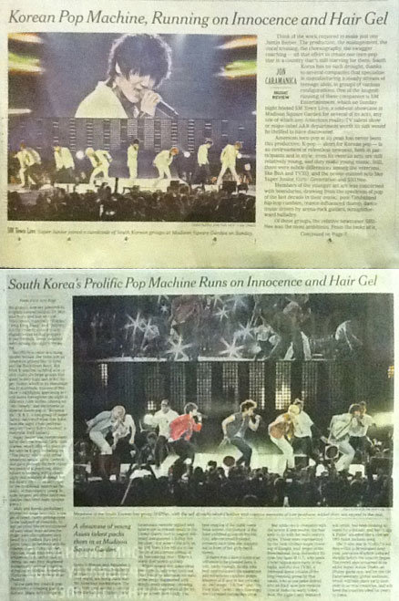 미국 뉴욕타임즈가 지난 23일 아시아 가수 최초로 뉴욕 매디슨 스퀘어 가든에서 펼친 SMTOWNLIVE WORLDTOUR in NewYork 공연에 대한 리뷰를 기사로 게재해 화제다.