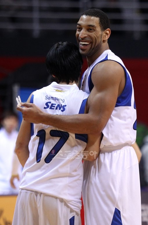20일 오후 고양체육관에서 열린 2011 ~ 2012 프로농구 서울삼성과 고양오리온스의 경기에서 87대 80으로 승리한 삼성 선수들이 기쁨을 나누고 있다.