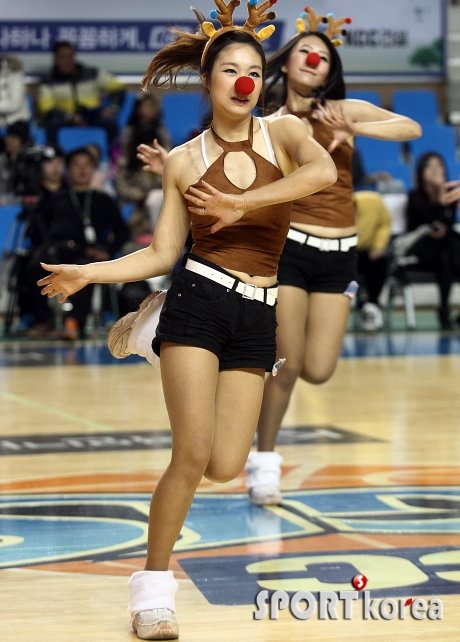 `2011-2012 KB 국민카드 프로농구` 전주 KCC 이지스와 서울 삼성 썬더스의 경기가 22일 오후 전주 실내체육관에서 열렸다. 경기에 앞서 KCC 치어리더들이 멋진 오프닝 공연을 펼치고 있다.