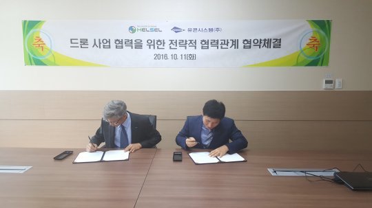 국내 드론전문 기업 헬셀과 국내 무인항공기 전문 생산업체인 유콘시스템이 양사의 드론사업협력 및 기술개발, 상호업무지원을 위한 전략적 협력관계 협약을 체결했다.