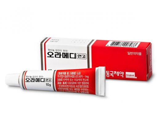 오라메디는 40년 넘게 사랑 받고 있는 대표적인 구내염 치료제로, 항상 젖어 있는 입안에도 잘 달라붙는 특수 기제가 사용되어 구내염 부위의 도포 및 도포의 유지가 가능하다. 특히 염증 부위에만 작용하여, 항염작용을 통해 자극물로부터 염증부위를 보호하고 자극이나 통증 없이 구내염을 치료해 준다.