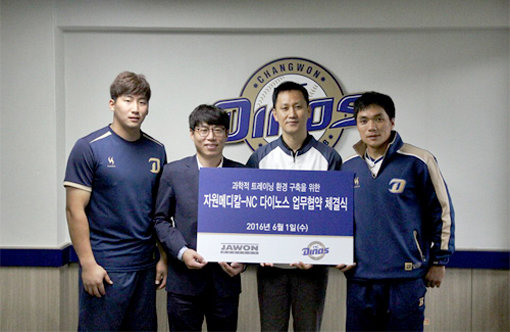 NC다이노스와 자원메디칼은 체계적 선수 트레이닝 환경 구축을 위한 업무협약을 체결했다. NC다이노스는 자원메디칼의 트레이닝 시스템을 도입해 주기적으로 구단 선수들의 체성분을 측정하게 된다. 이를 통해 얻은 데이터를 기반으로 선수 개개인에게 최적화된 운동처방을 제시한다. 체력관리와 함께 부상을 최소화하고 기량은 극대화할 수 있는 환경을 조성해 팀의 전력향상을 도모한다는 방침이다. 자원메디칼은 NC다이노스에 프리미엄 체성분 분석기와 과학적 분석·관리 솔루션을 제공한다. 솔루션은 NC다이노스의 트레이닝 비전을 반영해 지속 업데이트할 예정이다.