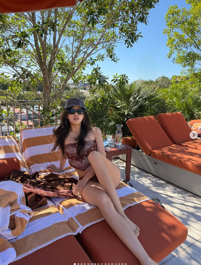 공개된 사진에는 호주 여행을 떠난 효민 모습이 담긴다. 호텔 수영장에서는 아찔한 비키니를 선보이는 효민. 마친 손수건 하나만을 두른 것 같은 느낌이 시선을 끈다. 군살 하나 없는 몸매도 감탄을 자아낸다.