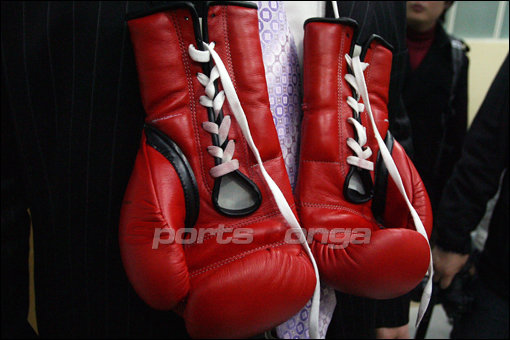 25일 오후 열린 타이틀 방어전에서 승리한 뒤 쓰러져 서울 한남동 순천향대학교병원에서 수술을 마친 최요삼 선수의 글러브. 선홍빛으로 물든 핏자욱이 당시의 치열함을 느끼게 하고 있다. 스포츠동아 양회성 인턴기자 yohan@donga.com