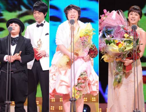 MC 강호동의 대상 수상으로 막을 내린 제1회 ‘SBS 연예대상’은 웃음과 눈물의 소감이 어우러져 뭉클함을 더했다. 주로 눈물의 소감은 후배 개그맨들에게, 웃음의 소감은 연륜을 자랑하는 선배 예능인들에게 터져나왔다. ◆ 정용국 "수상 소감 말하며 왜 우는지 이제 알았다" ‘웃찾사’의 ‘퐁퐁퐁’으로 남자 코미디스타상을 수상한 정용국은 "집에서 매해 TV를 보면서 ′나도 저기에 설 수 있을까′ 생각을 많이 했는데 오늘 내가 여기에 서 있다. 수상 소감을 말하면서 왜 우는지 몰랐는데 이제야 이해가 간다. 이 상을 꼭 받고 싶었다"고 울먹여 방청객들의 박수를 받았다. ◆ 김현정 "어제 집에 도둑이 들었는데…" ‘웃찾사’의 ‘귀여워’에서 깜찍한 웃음을 선사해 여자 코미디스타상을 수상한 김현정은 "어제 집에 도둑이 들었는데 이렇게 좋은 일이 있으려고 했나보다"고 주룩주룩 눈물을 흘리며 말했지만 그 모습조차 귀여워 보는 이들의 웃음을 유발했다. ◆김태현 김신영 "故 김형은에게 이 상을 바친다" 코미디 인기상을 수상한 김태현 김신영은 지난해 하늘나라로 간 동료 故 김형은에게 수상의 영광을 돌렸다. 김신영은 "1년 전에 하늘나라로 간 형은 언니에게 상을 받아 언니에게 주겠다고 약속했는데 지키게 되어 기쁘다"고 말해 참석자들을 숙연케 했다. 김태현 또한 "뭐가 그리 바빠 먼저 갔느냐"며 "형은아 사랑하고 고맙다"고 말하다 목이 메었다. ◆박소현 "타방송 드라마 주연 발탁때 MC 하차 위기도…" ′순간포착 세상의 이런일이′ MC만 10년째를 맞은 박소현은 여자진행자 부문 TV 스타상을 수상했다. 박소현은 "타방송 드라마 주연 발탁때 MC 하차 위기를 넘겨준 제작진께 감사드린다"면서 "매회 재미와 감동을 선사하고 시청률까지 안정적인 프로그램을 10년이나 진행하는 것이 ′세상에 이런일이′가 아닌가 싶다"며 감격해했다. ◆ 이경규 "대상 후보인데 상을 미리 받아 찝찝하다" TV스타상 남자진행자상을 수상한 이경규는 ′개그계의 대부′답게 시상식 무대에서도 기죽지 않은 입담을 과시했다. 이날 6명의 대상 후보로 올랐던 이경규는 2부 중반 TV스타상을 수상하는 무대에서 특유의 ′호통′(?)을 쳤다. 이경규는 "대상 후보인데 미리 상을 받아 대상은 물건너갔다"면서 "절대 상은 두개를 주지 않는 법이니 상을 받고도 찝찝함을 달랠 길이 없다"고 말해 앞선 수상자들의 ′눈물 소감′으로 다소 무거워진 분위기에 큰 웃음을 주었다. ◆ ′만삭′ 허수경 "주변에서 수상(受賞) 분만을 은근히 기대" 고운 한복으로 출산일이 임박한 ′만삭′의 몸매를 예쁘게 감춘 허수경은 AM부문 라디오스타상을 수상했다. 허수경은 "요즘 제 인생에서 가장 행복한 10개월째를 보내고 있다. 라디오 진행만 13년, 제 13년지기 청취자들에게 감사하다. 오늘 내일 하는 상황이라 숨이 찬다. 주변에서는 은근히 수상 분만을 기대하시는데 그렇게는 안될 것 같다"고 아쉬워했다. ◆ ′형님뉴스′ 강성범 "1월 28일 둘째아이 돌잔치 공지" ′웃찾사′의 ′형님뉴스′로 코미디 최우수상을 수상한 강성범은 ′형님′답게 수상 소감보다는 가족 행사 홍보에 열을 올렸다. 강성범은 "오는 1월 28일날 둘째아이 돌잔치가 있다. 형님(본인)이 더이상 아이를 낳지는 않을 것이니 꼭 참석해서 도와달라. 장소하고 시간은 추후 공지하겠다"고 말해 웃음을 유발한 뒤 "내년에는 더욱 대박나는 코너로 찾아뵙겠다"고 약속했다. 스포츠동아 이유나 기자 lyn@donga.com 이하 수상 명단 ▲대상-강호동 ▲최우수 프로그램상=′순간포착 세상에 이런일이′▲코미디신인상 - 이동엽 이용진 ▲작가상-김남경 조명진 ▲한류 프로그램상-′X맨′▲특별상-류시원 ▲코미디스타상 男 - 장재영 정용국 ▲코미디스타상 女 - 김현정 ▲코미디 인기상- 김태현 김신영 ▲ 코미디 최우수상-강성범 ▲라디오 스타상-허수경(AM) 컬투(FM) ▲프로듀서상-조형기 ▲만능엔터테이너상-하하 ▲TV 스타상-최영아(아나운서) 박소현(여자진행자) 이경규(남자 진행자) ▲네티즌 인기프로그램상- 라인업 ▲우수 프로그램상-′도전 1000곡′, ′생방송TV연예′