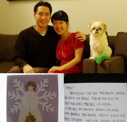′미국 새댁′ 서민정이 자신의 미니홈피에 남편에게 받은 감동적인 크리스마스카드를 공개했다. 서민정은 지난 6일 “엄마도 보고 싶고 낯선 미국 생활이지만 사랑하는 남편이 쓴 크리스마스 카드 한 장에 열심히 살아야지 하며 울고 말았다”며 최근 ′우리 세가족′이라는 제목으로 애견 ′몰리′와 함께 촬영한 사진 등 자신의 뉴욕 생활기를 공개했다. 재미교포인 서민정의 남편 안상훈씨는 서툰 한글로 “벌써 만난지가 1년이 넘고 처음 뉴욕에서 크리스마스를 보내서 너무 행복해. 민정이를 처음 본 순간부터 설렌 마음 아직도 변함없고 너무 사랑해.”라며 변함없는 애정을 표현했다. 또한 “나만을 믿고 뉴욕까지 와주어서 너무 고마워. 민정이의 희생과 사랑 항상 간직할께”라고 서민정에게 고마운 마음을 표현한 후 “2007년은 우리에게 너무 좋았던 해였던 것 같아. 2008년에도 더 행복하자. 쿨쿨 자고 있는 민정이를 보니 웃음이 난다. 항상 아내를 하늘같이 생각하는 남편이 될께”라며 뜨거운 애정을 약속했다. 남편의 애정어린 카드에 “우리 남편 영어밖에 못하는 줄 알았는데 알고보니 한글도 잘 쓴다. 크리스마스 아침에 눈뜨니 머리 위에 카드한장이 있었다. 내가 천사라고 천사 그려진 카드 샀단다”라며 행복한 마음을 적은 서민정은 “고마워요. 오빠. 나도 오빠 하늘처럼 모실께요”라며 남편의 편지에 화답했다. 서민정은 인기 시트콤 ′거침없이 하이킥′ 종방 직후인 지난해 8월 25일 10개월간의 열애를 끝내고 1세 연상의 치과 의사 안상훈씨와 백년가약을 맺은 뒤 현재 미국 뉴욕 맨해튼에서 신혼생활을 즐기고 있다. 스포츠동아 이유나 기자 lyn@donga.com