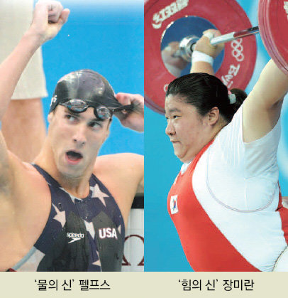 ‘사기유닛’의 선봉장은 단연 수영의 마이클 펠프스다. 목에 건 금메달만 8개. 그중에서 7개는 모두 세계신기록으로 우승할 만큼 뛰어난 성능을 자랑하는 미국의 ‘아이언맨’이다. 키 193cm, 양팔길이 201cm, 발 350mm, 폐활량 9000cc(일반인 3500cc)로 외관 스펙만 따져도 세계 최강의 무기다.