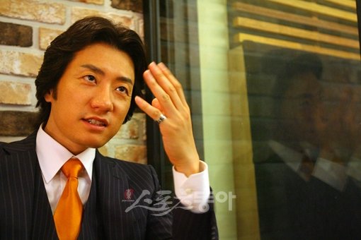 마주 앉은 김명민은 눈썹 꼬리를 순간 위로 치켜세우며 중저음의 시니컬한 어조로 이렇게 말했다. 그 목소리는 요즘 인기 높은 MBC 드라마 ‘베토벤 바이러스’(극본 홍진아·연출 이재규)의 지휘자 ‘강마에’ 것이었다. 김명민의 얼굴을 빤히 쳐다보며 과거 눈썹 모양을 머리 속으로 더듬어보니 사람 좋은 인상을 풍기는 갈매기 형이었다. “다 밀었습니다, 출연 결정하면서.”