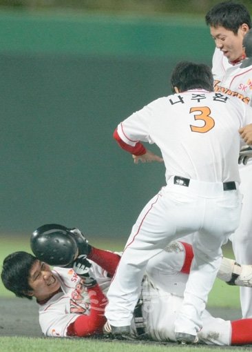 SK 모창민, 9회말 끝내기…얀 ‘행운의 승’