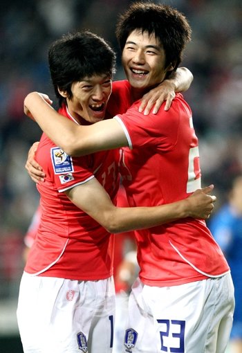 이청용(20)과 기성용(19·이상 FC서울)이 박지성의 대를 이어 한국 축구의 미드필드를 책임질 차세대 기수로 떠올랐다. 둘은 11일 우즈베키스탄과의 평가전에 선발출전해 전반 초반 선취골을 합작하며 3-0 대승의 물꼬를 텄고, 13일 파주 NFC에서 진행된 대표팀 훈련에서도 박지성과 함께 노란 조끼를 입은 주전팀에서 교체 없이 연습경기를 마쳤다. 이들에게 15일 아랍에미레이트연합(UAE) 격파의 선봉장 역할을 맡기겠다는 허정무 감독의 의중을 엿볼 수 있는 대목이다.