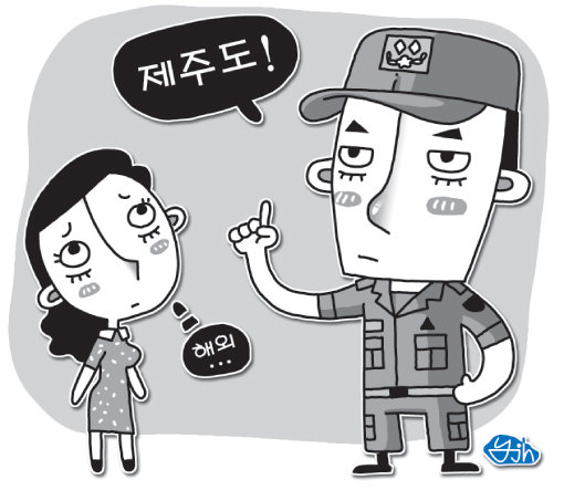 이 사람이 자기는 해외 한번 나가려면 부대장님 결재도 받아야하고 귀찮은 일도 많다면서 계속 제주도를 고집했습니다. 그러나 이 남자가 얘기한 건 모두 핑계였고, 사실 제주도가 해외보다 쌌기 때문입니다.