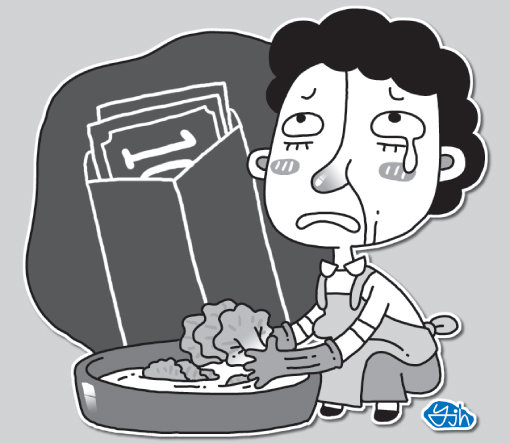 하지만 오십 줄 나이에 특별한 능력도 없는 아줌마에게 열려진 길은 오직 하나였습니다. ‘주방보조일’ 시급 4000 원에, 보통 4∼5시간을 일하니까 하루 2만원 정도 벌 수 있는 자리였습니다. 고민 하다가 용기를 내서 전화를 걸었습니다. “주방보조 구하신다케서 전화 드렸는데예. 사장님 사람 구했는교?” 했더니, “주방 일은 해 봤는교?” 하고 물었습니다.
