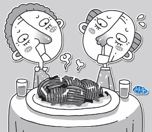 하지만 내심 기대했는데, 부엌의 반응은 무반응인 겁니다. 세분 모두 조용히 식사만 하셨습니다. 그리고 “식사 다 했다∼” 하셔서 부엌으로 갔는데, 큰 접시 가득 담긴 잡채가 거의 다 없어진 겁니다. 속으로 ‘어머∼ 그렇게 맛있으셨나∼ 아유∼ 그럼 말씀을 하시지∼’ 하면서 흐뭇한 마음으로 상을 치웠습니다. 남편하고 같이 집에 오는데, 남편이 약국에서 소화제를 사오는 겁니다. 그리고 “당신!! 앞으로 절대∼ 잡채 같은 거 하지 마. 오늘 당신 때문에 얼마나 고생했는 줄 알아” 이러는 겁니다.