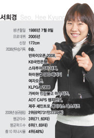우승권을 맴돌았지만 아무도 기억해주지 않았던 프로 3년차 서희경은 2008년 8월 하이원컵 채리티 오픈에서 생애 첫 승을 거둔 이후 하반기 12개 대회에서 6승을 쓸어 담으며 KLPGA 무대 최고의 ‘스타’로 떠올랐다. 우승 이후 5개월여, 이제 막 알을 깨고 나온 병아리처럼 어리둥절한 시간을 보냈지만 그녀는 자신이 어떻게 성장해야하는지는 분명히 알고 있다.