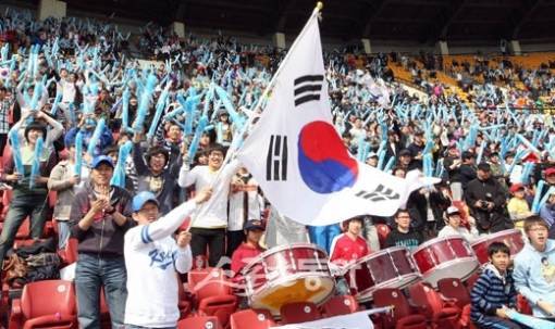 다저스타디움한국팬‘가득’…곳곳태극기·파도타기응원