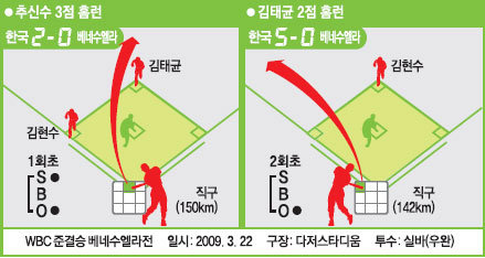 추신수스리런·윤석민역투베네수엘라 10-2 완파…내일美·日승자와챔프격돌