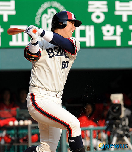 최승환은 2회 손시헌이 안타로 만든 2사 1루의 기회에서 상대 투수 양현종을 상대로 비거리 120m짜리 좌월 투런 홈런으로 팀에 리드를 안겼다.