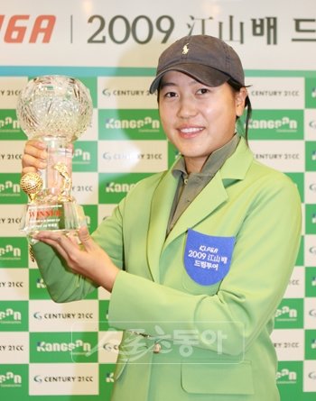 30일 강원도 원주 센추리21 골프장에서 열린 한국여자프로골프 2009 강산배 드림투어 1차전에서 연장 접전 끝에 우승을 차지한 오세라가 우승컵을 들고 기뻐하고 있다.