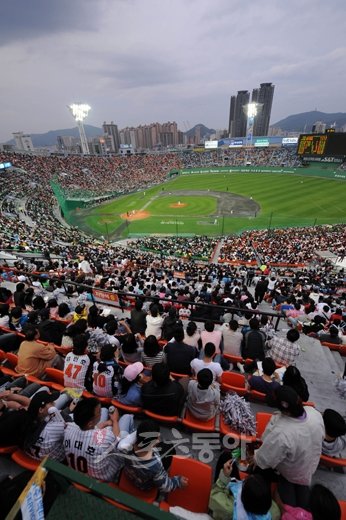 2009 CJ마구마구 프로야구가 최소경기 100만 관중을 돌파하며 시즌 목표인 550만 관중을 향해 순항하고 있다. 사직구장에는 2일에도 2만5700여 관중이 입장, 100만 관중 돌파의 일등공신 역할을 했다.사직 | 김종원 기자 won@donga.com