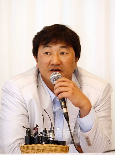 프로야구선수협회 손민한 회장(롯데)이 4일 서울 삼정호텔에서 열린 프로야구선수 노동조합설립추진위원회를 마친 뒤 기자회견을 갖고 질문에 대답하고 있다. 임진환 기자 photolim@donga.com