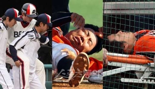 국민들에게 행복을 안긴 WBC 선수들. 그 후유증이 줄부상으로 이어지고 있다. 두산 고영민(왼쪽 맨 위부터 시계 방향)은 오른 발목을 접질렸고, 한화 김태균과 이범호도 심각하진 않지만 뇌진탕 증세, 왼 무릎 타박상으로 주변을 안타깝게 했다. 스포츠동아DB/스포츠코리아