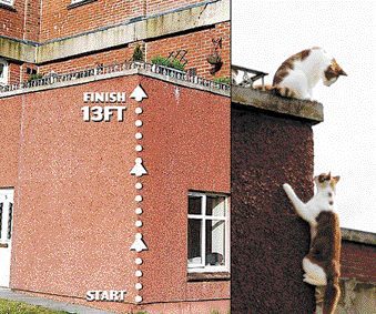 약 13피트(약 4미터)에 이르는 벽을 타고 올라간 ‘스파이더 고양이’가 있어 화제다. 어느 고양이든 나무 같은 곳을 곧잘 타고 올라간다.