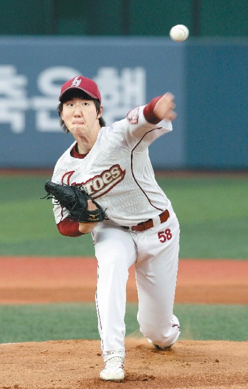 지난 14일 저녁 서울 목동야구장에서 열린 2009프로야구 히어로즈와 두산의 경기에서 히어로즈 선발 투수 강윤구가 역투하고 있다. 목동ㅣ 박화용 기자 inphoto@donga.com
