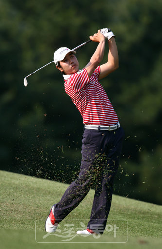 5일 용인 아시아나골프장에서 열린 KPGA선수권대회 2라운드에서 단독 1위에 오른 배상문이 5번홀에서 아이언 샷을 하고 있다.