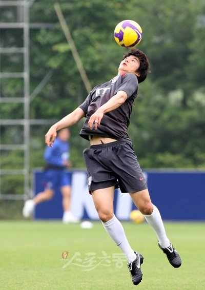 9일 파주NFC에서 열린 대표팀 훈련 도중, 기성용이 머리로 볼을 따내고 있다. 파주 | 박화용 기자 inphoto@donga.com