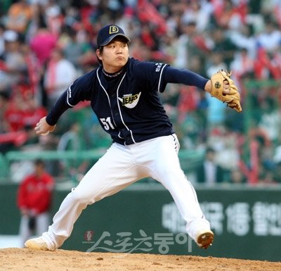 임태훈은 “올해는 각이 크고 빠른 슬라이더도 던지고, 여러 가지 구종을 섞어 던지게 됐다. 찬호 선배님 도움이 컸다”고 기분좋게 말하다가 갑자기 얼굴 표정이 바뀌며 한마디 곁들였다.