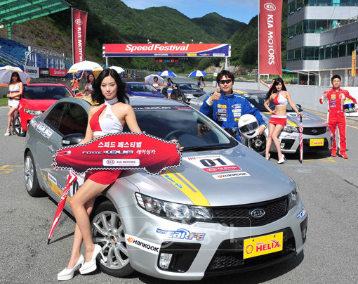 기아차가 21일 강원도 태백 레이싱파크에서 열린 ‘2009 스피드 페스티벌’에서 ‘포르테 쿱’을 전시하고 경주용으로 개조한 ‘포르테 쿱’ 레이싱카를 카레이서들이 시승하는 행사를 마련했다.