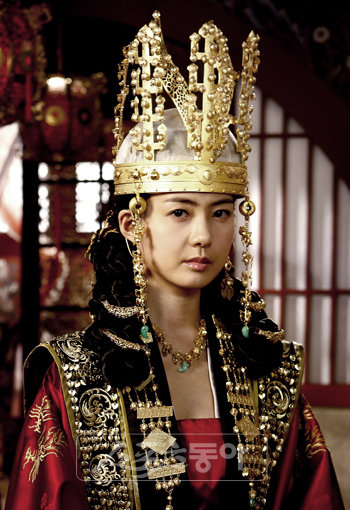 이요원의 이처럼 고군분투하는 무대는 MBC 월화드라마 ‘선덕여왕’(극본 김영현·박상연·연출 박홍균). 방영 초부터 시청률 30%%에 육박하는 기록을 세운 ‘선덕여왕’에서 이요원은 역사상 첫 여왕으로 성장하는 과정을 연기하고 있다. 공주란 신분을 모른 채 남장 여자로 신라 화랑에 들어가 전쟁터를 누비는 모습이 그녀가 요즘 주력하는 연기다.