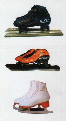 ○ 스피드 스케이팅(speed skating): 400m트랙을 2명이 출발해 상호교차(인코스·아웃코스)하면서 기록경기를 하기 위한 스케이트이다. 날(에지)의 넓이는 1mm~1.5mm다.