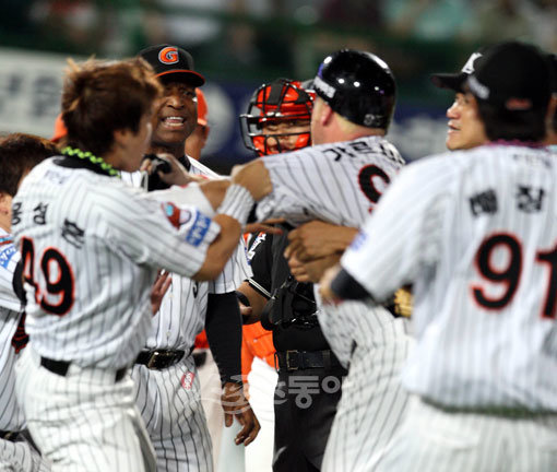 오석환 주심이 가르시아를 말리는 사이 양팀 선수들은 덕아웃을 박차고 나오면서 대치했다.