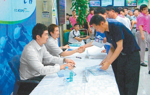 10일 수원스피존을 방문한 특선급 정해권(왼쪽 두번째)선수와 우수급 이종필 선수(왼쪽 첫번째)가 경륜팬들에게 사인을 해주고 있다.사진제공|경주사업본부