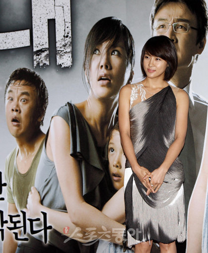 16일 영화 ‘해운대’ 시사회에 참석, 무대인사에 나선 배우 하지원. 양회성 기자 yohan@donga.com
