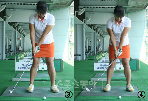 하지만 탄도를 높이고 런을 줄이는 샷을 하려면 백스윙 스타트를 시작할 때 사진③처럼 손이 먼저 출발하되 클럽 헤드가 거의 동일 선상에서 따라간다는 느낌으로 스윙해야 한다.