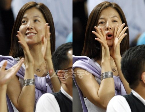 응원이 닿는 곳은 FC서울 소속 정조국. 12월 11일 결혼을 앞둔 두 사람은 이날도 뜨거운 애정을 과시했다.