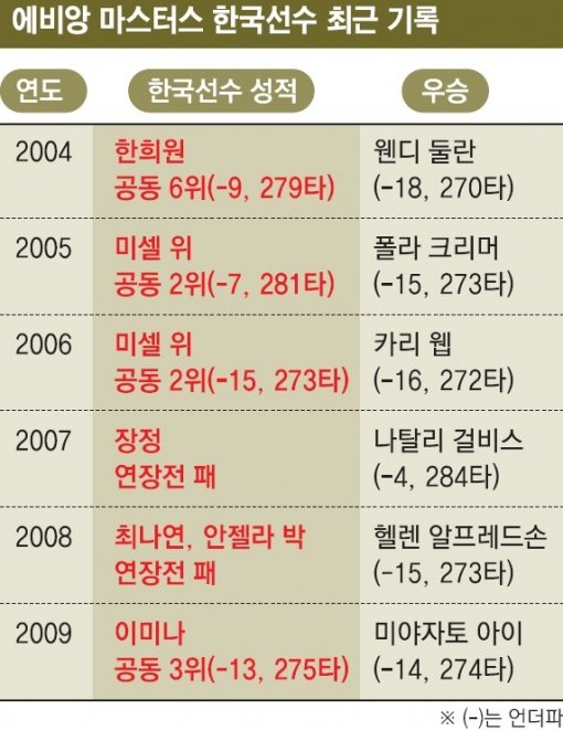 알프스 정복에 나선 우리 선수들이 뒷심 부족으로 또 다시 눈물을 삼켰다. 유난히 한국 선수와 인연이 없는 에비앙의 악연이 질기기만 하다. 이미나(28·KTF)는 27일(한국시간) 프랑스 에비앙-르뱅 에비앙 마스터스 골프장(파72·6344야드)에서 열린 미 LPGA 투어 에비앙 마스터스(총상금 325만 달러) 최종 4라운드에서 7언더파 65타를 몰아치는 선전을 펼쳤다.