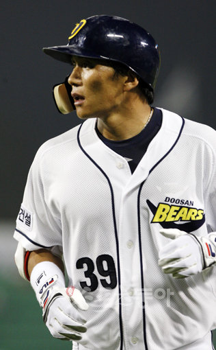 지난 6월 초 광주구장에서 수비 도중 턱관절 골절이란 불의의 부상을 당했던 두산 이종욱(사진)은 최근 그라운드에 복귀한 뒤 ‘검투사 헬멧’을 썼다.