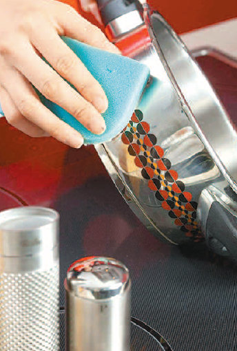 CJ LION 주방세제 브랜드 매니저인 이장혁 씨는 “따뜻한 물에 주방 세제와 식초를 넉넉히 풀어 부드러운 스펀지에 적신 뒤 팬 전체를 세심히 닦는 작업이 처음에는 반드시 필요하다”고 말한다. 마지막에 거품을 헹궈낼 때도 더운 물을 사용하는 게 좋다. 여기에 물을 붓고, 식초를 2∼3방울 떨어 뜨려 끓이는 과정을 더하면 추후 색이 변하는 것을 방지할 수 있다.