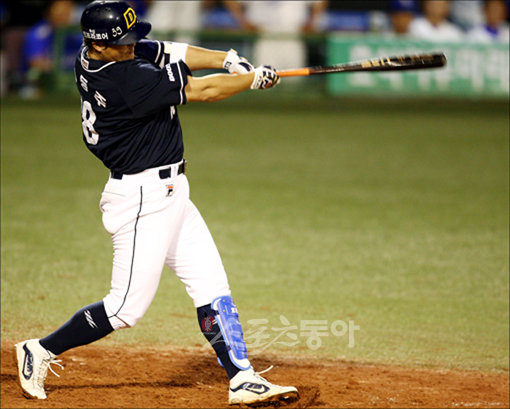 ‘에이스 킬러’라는 수식어에 대해서도 “봉중근, 류현진이 대한민국을 대표하는 투수들이지만 김동주보다는 경험이 부족하다”며 “어느 볼이든 칠 수 있다는 사실 때문에 김동주가 타석에 들어서면 위축되는 면이 있다. 때문에 평소 던지는 볼을 못 던지고 실투를 하는 경우가 많은 것 같다”고 설명했다.