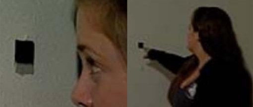 미국 워싱턴주의 실버데일에서 살고 있는 에이프릴 밀러라는 이 여성은 지난 주에 이사를 가기 위해서 짐들을 정리하고 있던 중 침실의 벽면에 걸려 있던 거울 뒤에 난 작은 구멍을 발견하고 깜짝 놀라지 않을 수 없었다.