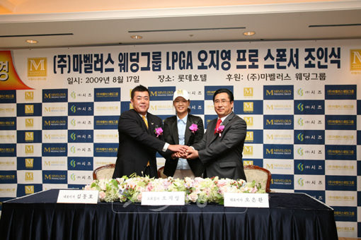 오지영은 “1년 넘게 스폰서 없이 대회에 출전해 왔는데 이제 든든한 후원사를 만나 마음이 편하다. 앞으로 운동에만 전념해 우승으로 보답하겠다”고 말했다. 마벨러스 웨딩그룹 오은환 회장은 “오지영 선수를 후원하면서 VIP고객에게 마벨러스 웨딩그룹을 알릴 수 있기를 기대한다”고 말했다.