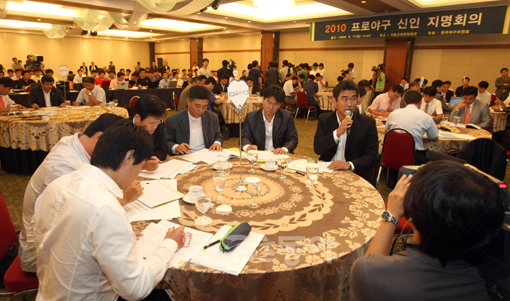 17일 교육문화회관에서 열린 신인드래프트. 유망주들의 이탈로 다소 김이 빠질 것이란 예상과 달리, 8개 구단 수뇌부와 스카우트들은 한명이라도 더 좋은 신인을 뽑기 위해 안간힘을 썼다. 1라운드에서 첫 지명권을 행사한 LG부터 8번째 지명권을 가진 SK까지, 각 구단은 ‘숨은 진주 찾기’에 온 힘을 기울였다. 예년보다 더 치열한 ‘눈치싸움’이 벌어졌다.